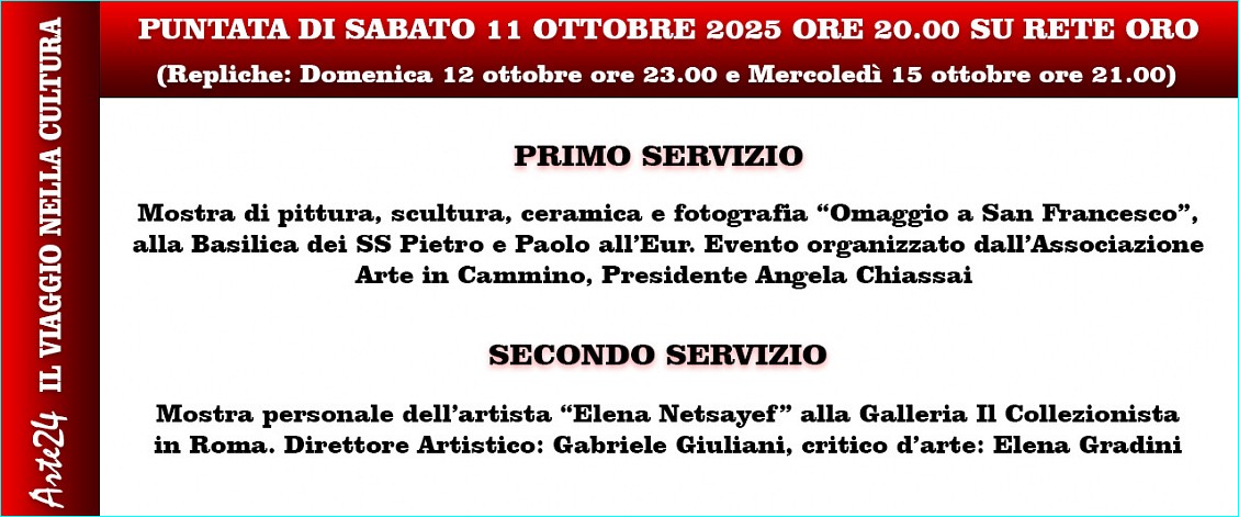 Arte24 ritorna sabato 04 ottobre - La Nuova Voce di Settembre è on line